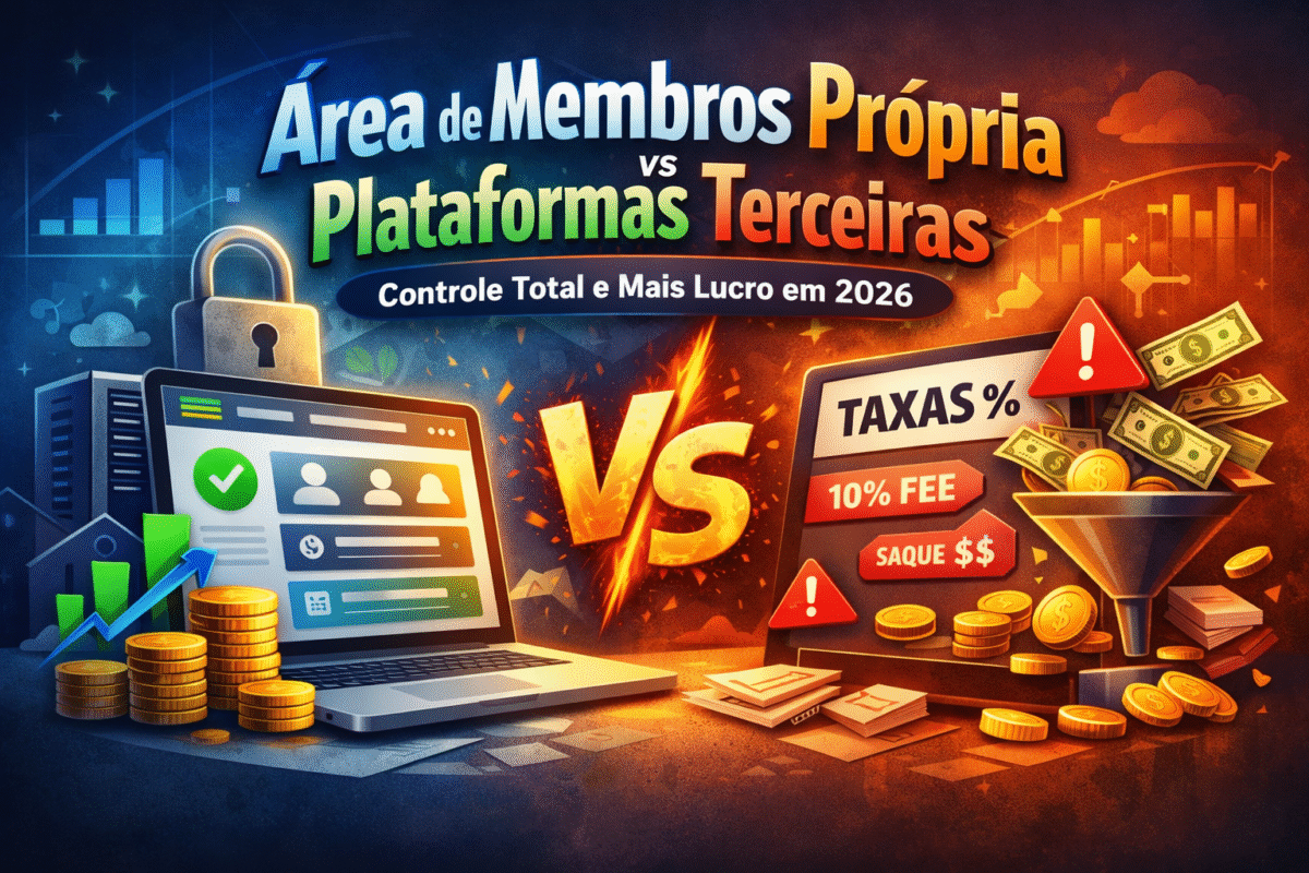 Área de membros própria vs plataformas terceiras — custos, taxas e controle em 2026. Área de Membros Própria vs Plataformas Terceiras: por que ter controle total em 2026 Se você vende produtos digitais, cursos ou assinaturas, uma decisão muda tudo no seu lucro: usar uma plataforma terceirizada ou ter uma área de membros própria com […]