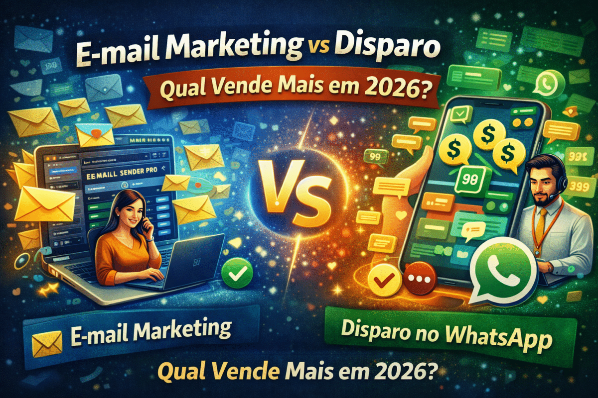 Comparativo completo entre e-mail marketing e disparo no WhatsApp para vender mais em 2026. E-mail Marketing vs Disparo no WhatsApp: Qual Vende Mais em 2026? Quem trabalha com vendas digitais, atendimento ou marketing inevitavelmente chega a essa dúvida: e-mail marketing ainda funciona ou o WhatsApp vende mais? Os dois canais continuam vivos e gerando resultados. […]